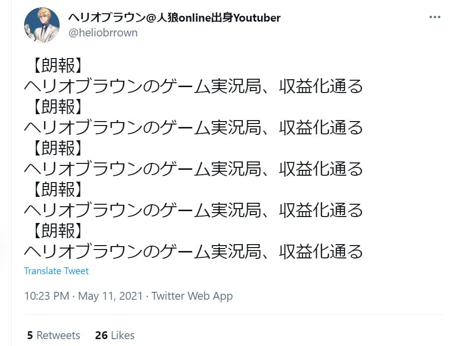 収益化したことにより、ヘリオブラウン氏はれっきとした「Youtuber」となりました。